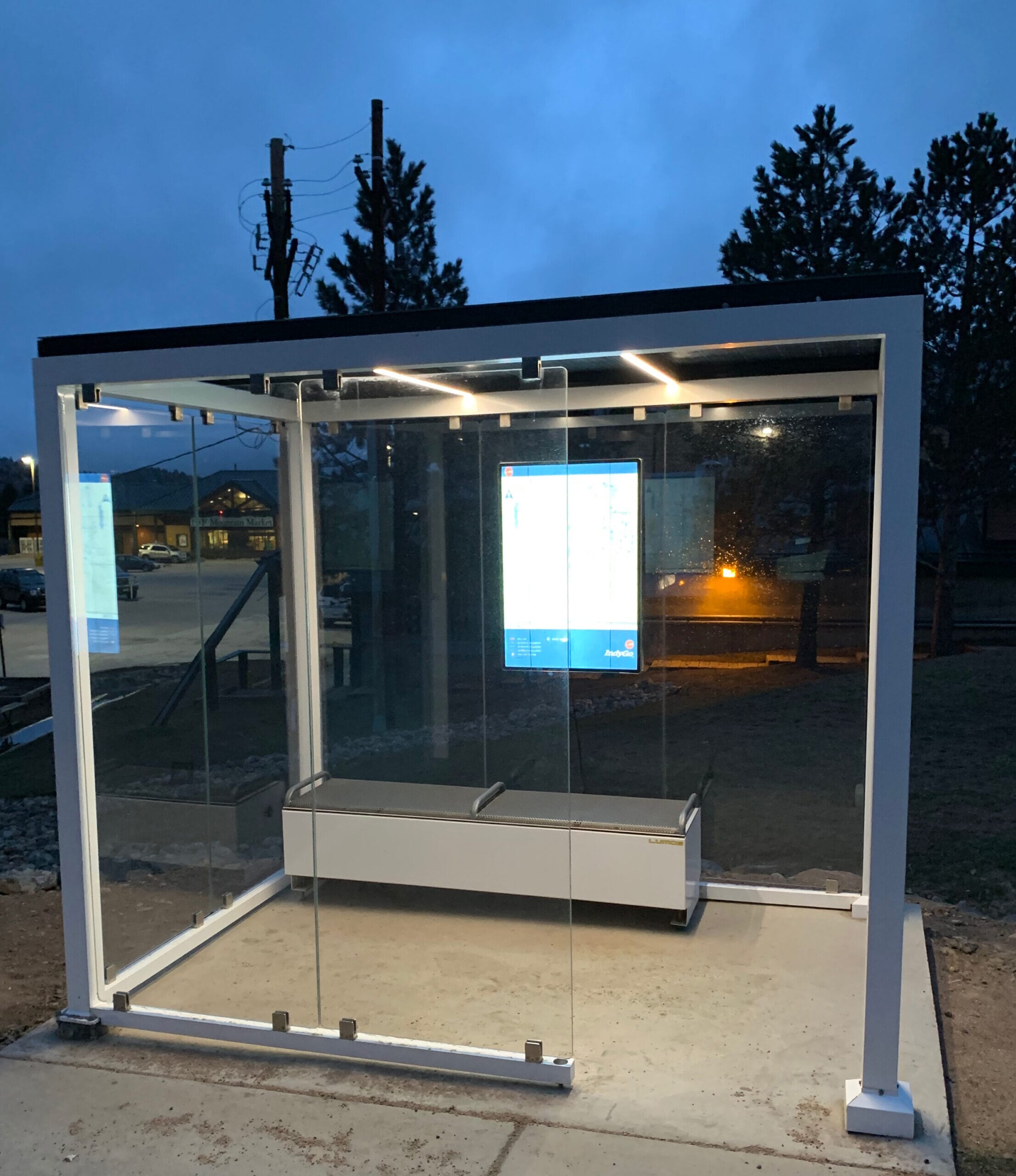 The SolarStop solar transit shelter is a freestanding structure with a built-in off grid power system. The SolarStop provides an excellent weatherproof shelter for transit waiting areas.